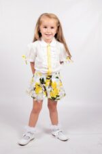 Girls Lemon Yellow & White 2 piece Cotton Short Set By Beau Kid