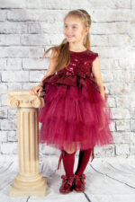 Girls Burgundy Red Sequin & Tulle Dress by Beau KiD