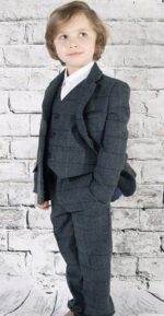 Boys Blue Tweed Check 3 Piece Suit By Beau KiD