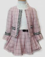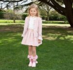 Girls tweed look skirt, jacket and blouse set by Beau KiD – Pink or Camel
