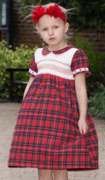 Baby girls & Girls Tartan Smocked Dress by Beau KiD – Navy Blue or Red