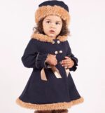Girls & Baby Girls bow coat & hat set by Beau KiD – Red or Navy Blue
