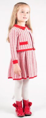 Girls dress and cardigan by Beau KiD – red, pink, blue, coral