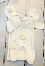 Baby Girls Ivory Romper, Hat & Mittens Gift Set by Couche Tot
