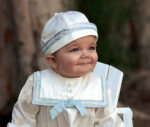 Baby Boys Silk Sailor Romper and Hat by Sarah Louise – 002238 – Ivory/Blue or Ivory/Ivory