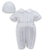 Sarah Louise baby boys white linen romper and hat
